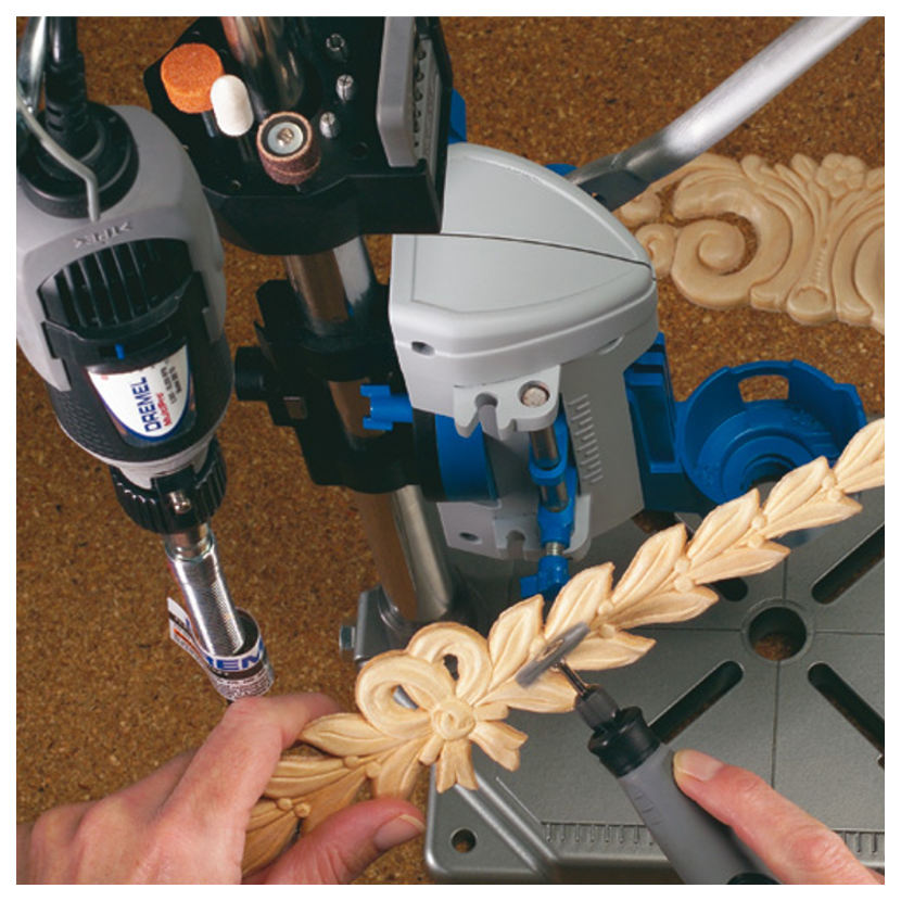 • Tento kombinovaný univerzální stojan na vrtačku a držák nářadí představuje perfektní řešení pro stacionární použití nářadí Dremel
