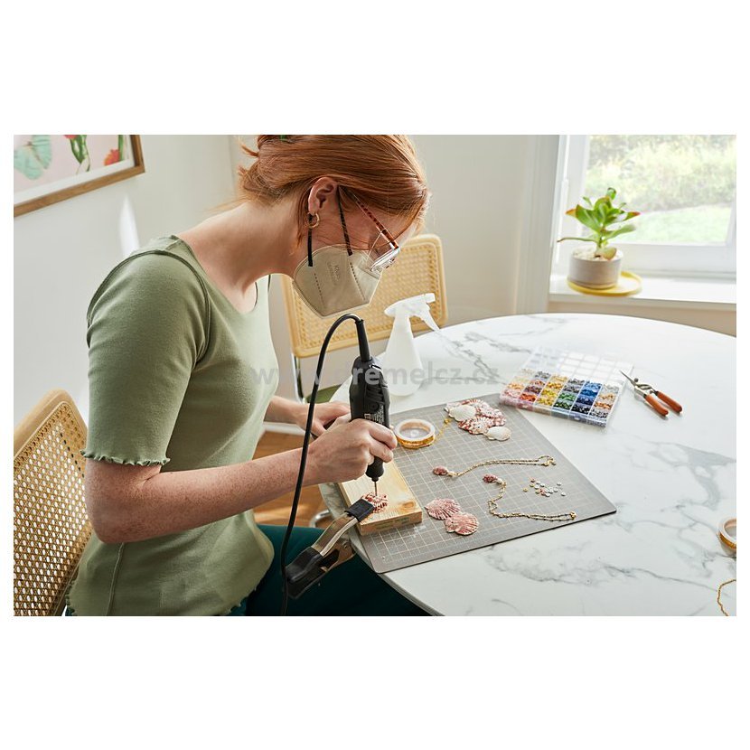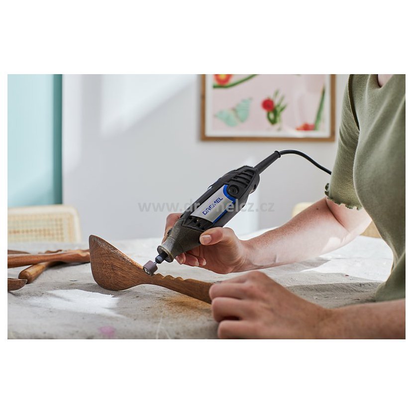 • Dremel 3200 se vyznačuje pogumovanou rukojetí, která zaručuje přesnou kontrolu a snižuje únavu při práci.