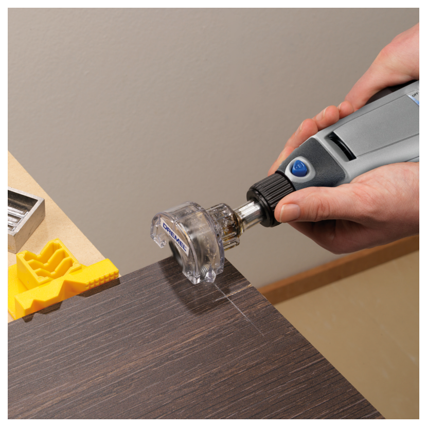 • Změní nářadí Dremel na přesnou okružní pilku pro jemné, čisté a přímé řezy do dřeva. Ideální na laminátové a dřevěné podlahy nebo tenké dřevěné desky.