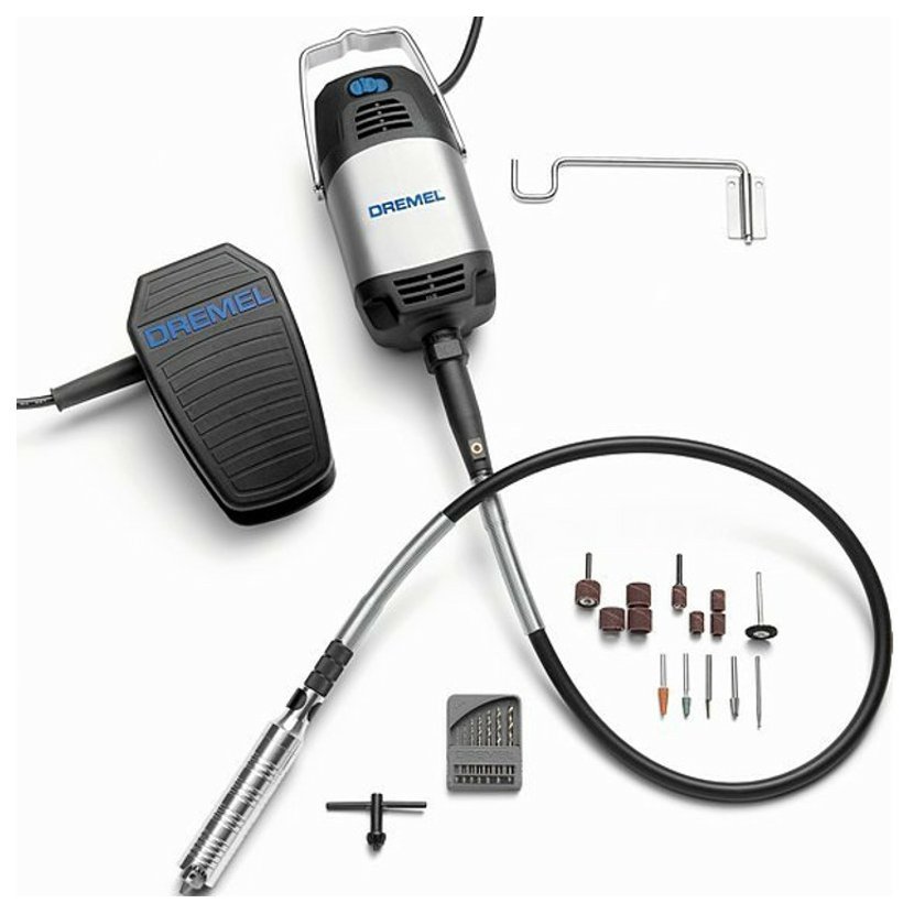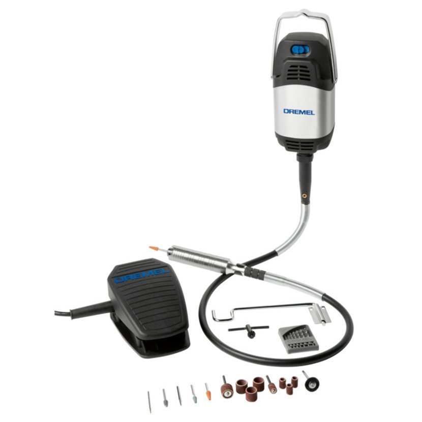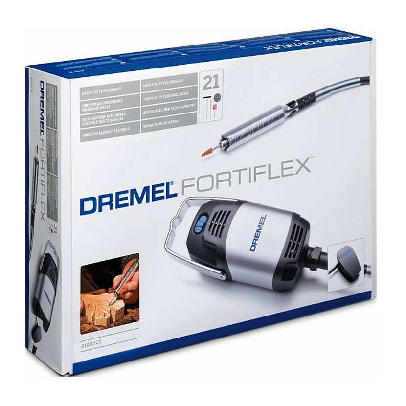 Ohebná hřídel Dremel 9100 Fortiflex je vysoce kvalitní přesné nářadí, které se skládá z výkonného závěsného motoru (300 W), patentované ohebné hřídele pro velké zatížení, výměnné přesné rukojeti a nožního spínače pro řízení proměnných otáček (0 – 20 000 ot/min).