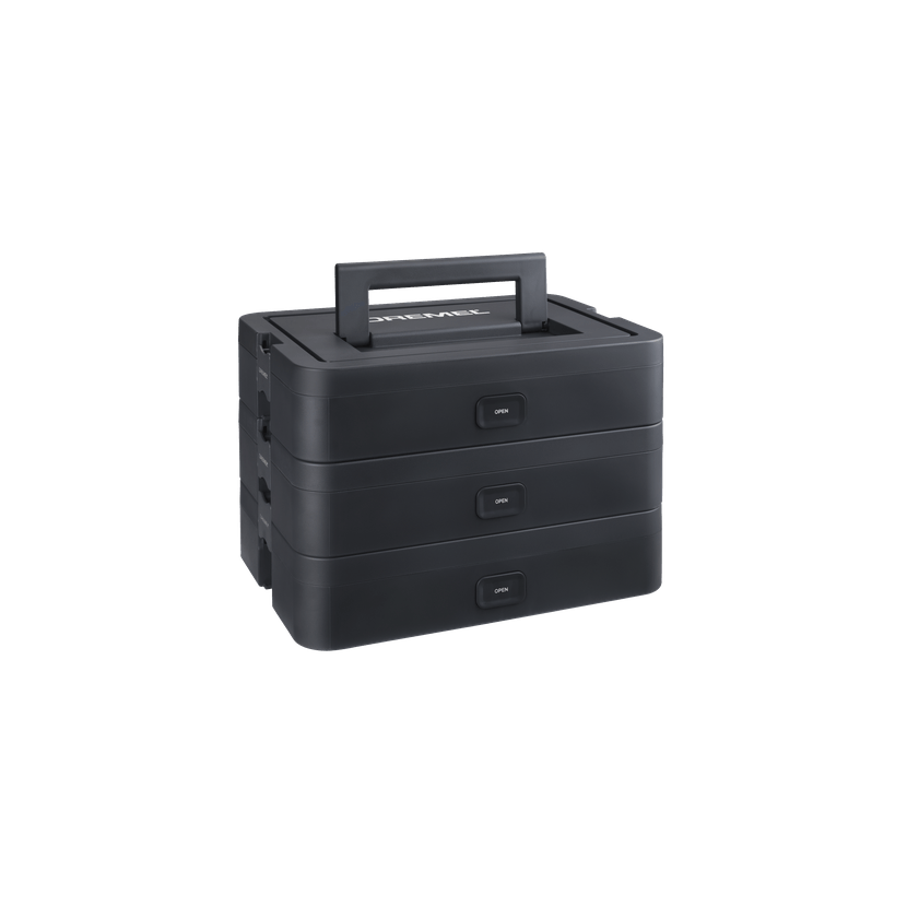 Ať už chcete uspořádat příslušenství nebo uložit menší nářadí, Dremel Box je všestranný úložný systém. Do každého boxu můžete umístit až 20 kusů příslušenství nebo bez problémů vyjmout organizér na nářadí, abyste získali více místa.