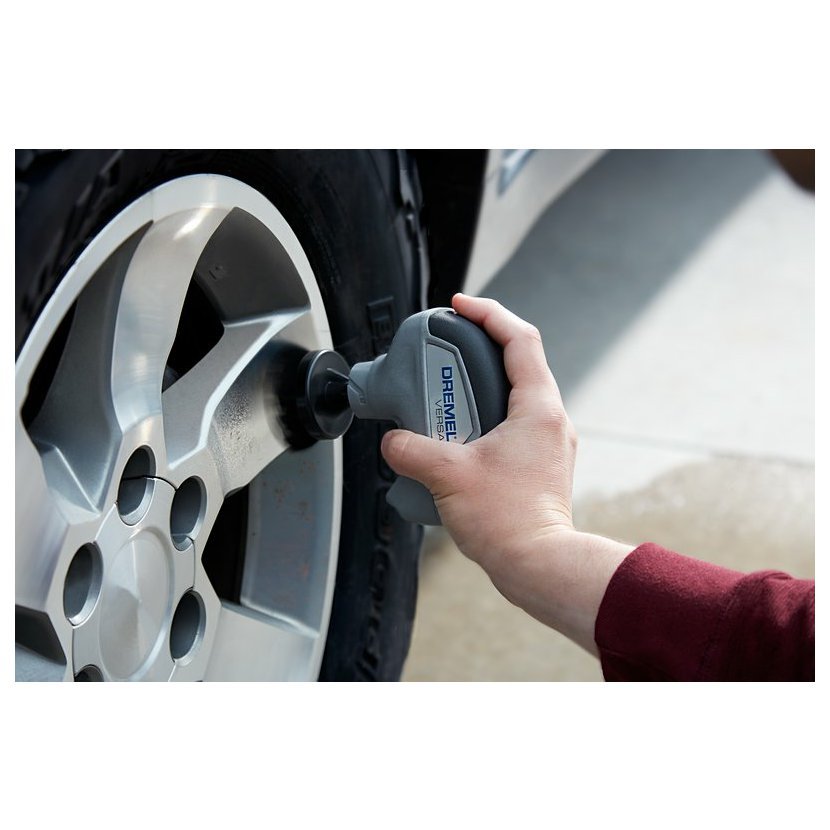 Štětinový kartáč Dremel Versa je ideální na hloubkové čištění a těžko přístupné povrchy. Díky svým flexibilním a zároveň pevným nylonovým štětinám zvládnou tyto podložky snadno práci v interiéru i exteriéru. Jsou vhodné rovněž pro použití s vodou či jemnými čisticími prostředky i na vnitřní prostory aut, pneumatiky, sportovní vybavení a další. Zkombinujte univerzální čisticí podložky s vysokými otáčkami přístroje Dremel Versa a práce bude hotová během chvilky.