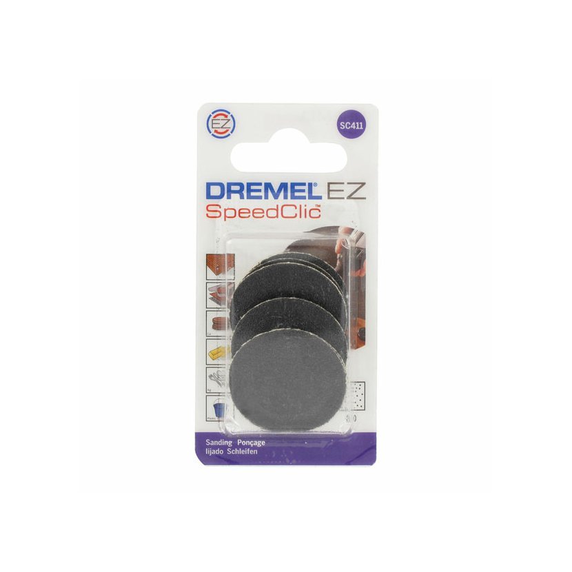 • Brusné kotouče SC411 s rychloupínáním EZ SpeedClic vydrží 2x déle a odstraní 2x více materiálu než brusné kotouče Dremel 411 a 413.