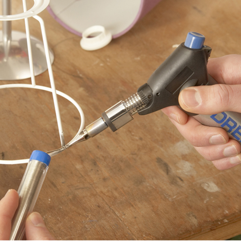 Dremel VersaFlame funguje na principu zkapalněného butanu, což z něj činí nezávislého dravce, který nepotřebuje zásuvku. Jeho srdcem je piezoelektrické zapalování, které probudí plamen k životu jediným stisknutím – zapomeňte na hledání sirek nebo škrtání o kolečko. Představte si ho jako kapesního draka, kterého máte v kleci; díky regulaci přívodu vzduchu a plynu můžete ovládat nejen délku plamene, ale i jeho teplotu. Můžete mít buď ostrý modrý plamen pro tvrdé pájení, nebo využít katalyzátor pro jemné nahřívání. Celá mechanika je navržena tak, aby hořák stabilně stál na své základně, což vám uvolní obě ruce pro manipulaci s vaším projektem. Je to symfonie techniky, která pracuje pro vás, nikoliv proti vám.