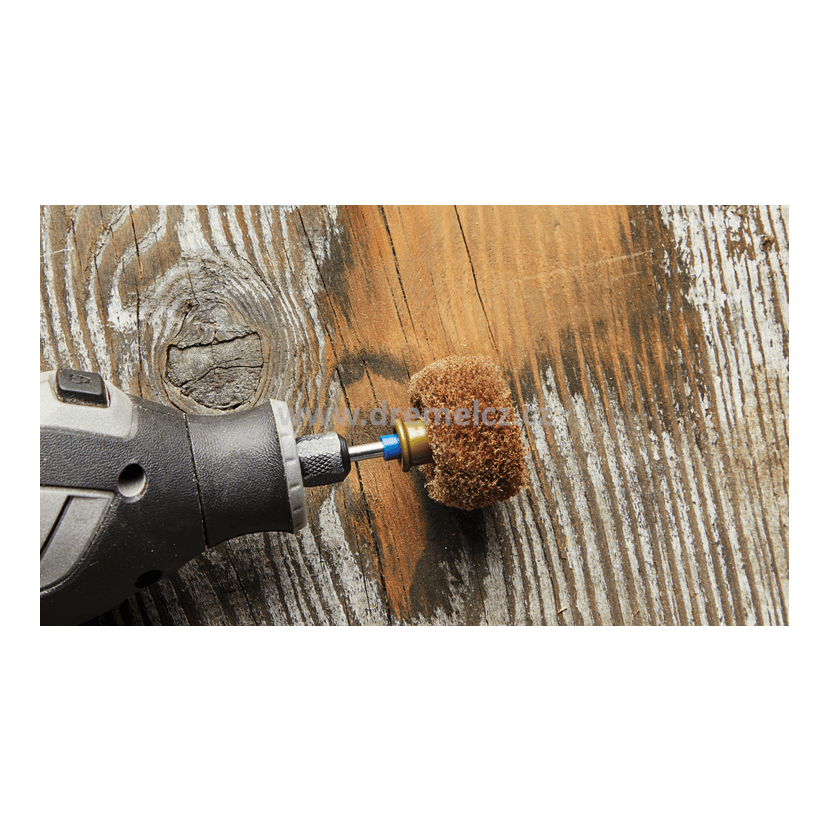 Zapněte nářadí, LEHCE přiložte kotouč na materiál a danou oblast několikrát přejeďte, dokud se nevyčistí. Lehký dotyk je pro toto příslušenství nejlepší technika.